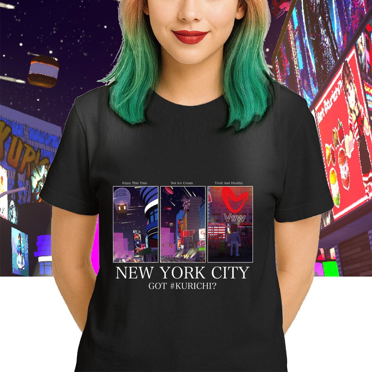 THE SANDBOX内の**#KURICHI LAND**で見られる近未来NYのシーンを、ストリート感あふれるアートTにプリント。